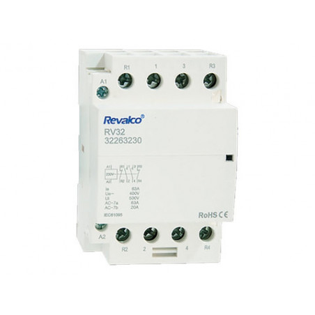 Marque: REVALCORéférence: RV3230463230Description: CONTACTEUR DE PUISSANCE 63A 4P 3M 4NF BOBINE 230VACConditionnement: 1EAN: 8033032211761
