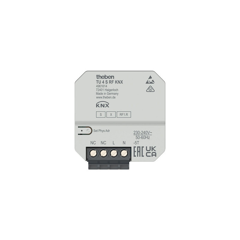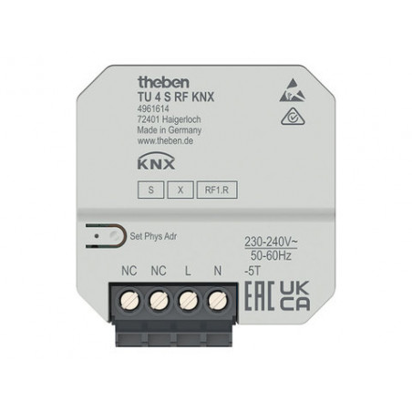 Description: INTERFACE RADIO ENCASTREE POUR BOUTON-POUSSOIR A 4 CANAUX, KNX RF, DATA SECURE
