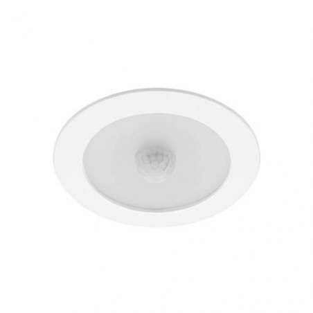 Downlight encastré rond fixe.2700K, 3000K ou 4000K au choix à larrière du luminaire.Fixation par ressorts.Détecteur IR 90, détection max. 5m de diamètre.Allumage de 3min après détection.Fonctionne quand la luminosité 100Lux.