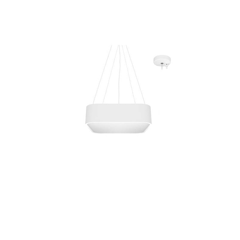 Suspension carrée.Diffuseur PS prismatique.2700K, 3000K ou 4000K au choix dans le luminaire.Livrée avec câbles de suspension en acier 2m max, base ronde et câble dalim blancs.Convertisseur dimmable coupure de phase intégré.