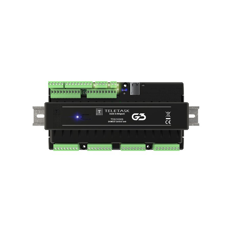 DOMUS EST UNE UNITÉ CENTRALE DIN-RAIL DE TROISIÈME GÉNÉRATION G3 POUR LES APPLICATIONS DINTÉGRATION AVEC UN NOMBRE LIMITÉ DENTRÉES ET DE SORTIES MAIS AVEC TOUTES LES FONCTIONNALITÉS. DOMUS INTÈGRE TOUS LES ÉLÉMENTS CONNECTÉS POUR SE COMPORTER COMME UN