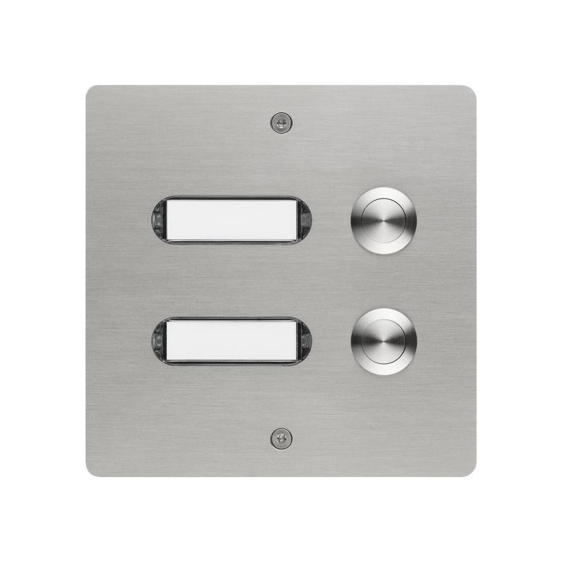 Panneau sonnette inox brossé V2A 2 boutons poussoirs apparent 130x130x19mm
