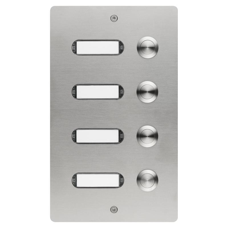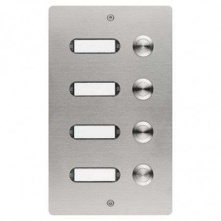 Panneau sonnette inox brossé V2A 4 boutons poussoirs apparent 130x220x19mm