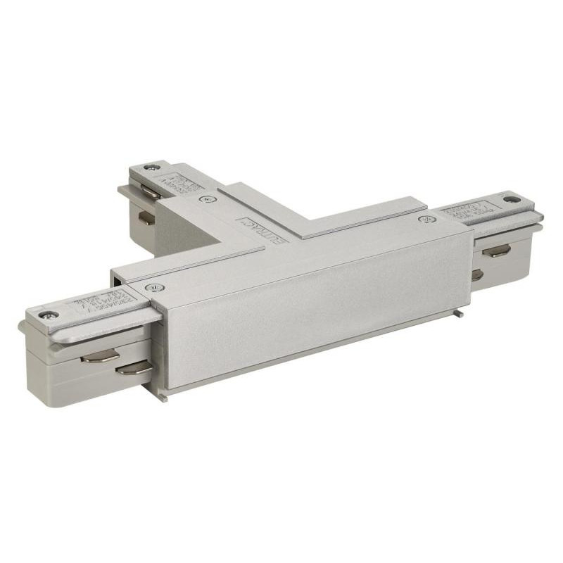 Emballage :1/20Description: EUTRAC Connecteur en T avec option d'alimentation, terre à l'intérieur, droite, gris argent