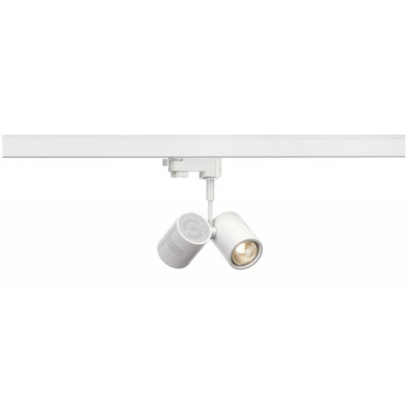 Emballage :1/20Description: Spot BIMA 2 pour rail triphasé 230 V, à 2 spots, QPAR51, rond, blanc mat, max. 100 W, adaptateur triphasé incl.