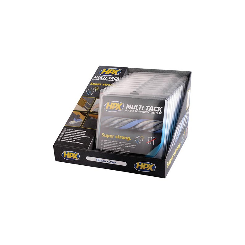 Presentoir avec 10x ruban adhesif double face multi-tack - semi-transparent - 19 mm x 25 m