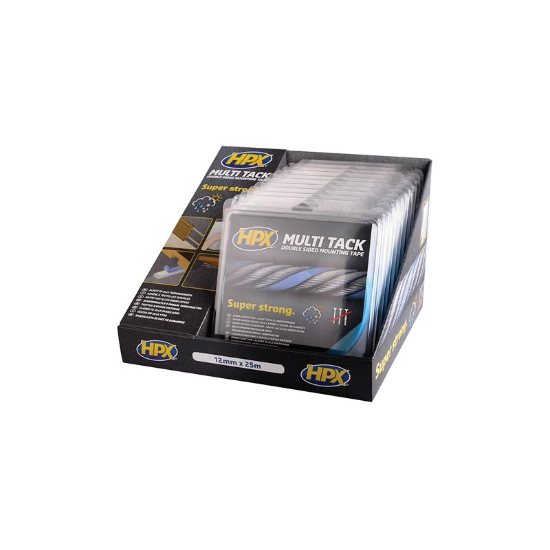 Presentoir avec 10x ruban adhesif double face multi-tack - semi-transparent - 12 mm x 25 m