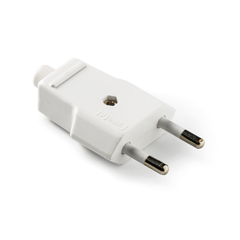 Fiche male 2Pol 2,5A 250V blanc avec Barcode