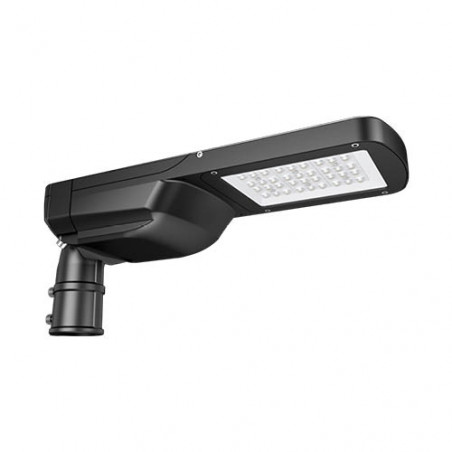 Streetlight avec lentille de type 3 130x60 pour léclairage public et les parkings. Boîtier en aluminium IP66 avec protection sel de mer et fixation réglable pour montage horizontal ou vertical sur un poteau de 60 mm. Equipé de Lumileds 5050 avec une durée de vie L90 60,000h. Driver dimmable 1-10V avec fonction CLO préprogrammée. Le boîtier peut être ouvert sans outil. Lors de louverture du boîtier, la tension est interrompue par linterrupteur à couteau intégré. Tension de raccordement 100240V 50/60Hz, protection contre les surtensions 10kV, température de fonctionnement -40 50C. Classe disolation I. Différents accessoires de montage sont disponibles. Options possibles capteur de lumière du jour, détecteur de mouvement.