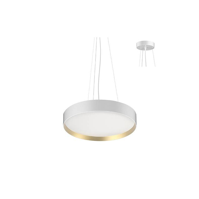 Suspension ronde.Diffuseur microprismatique.2700K, 3000K ou 4000K au choix dans le luminaire.Avec câbles de suspension en acier 2m max, base ronde et câble dalim blancs.Convertisseur dimmable DALI, Push-Dim et 1-10V intégré.
