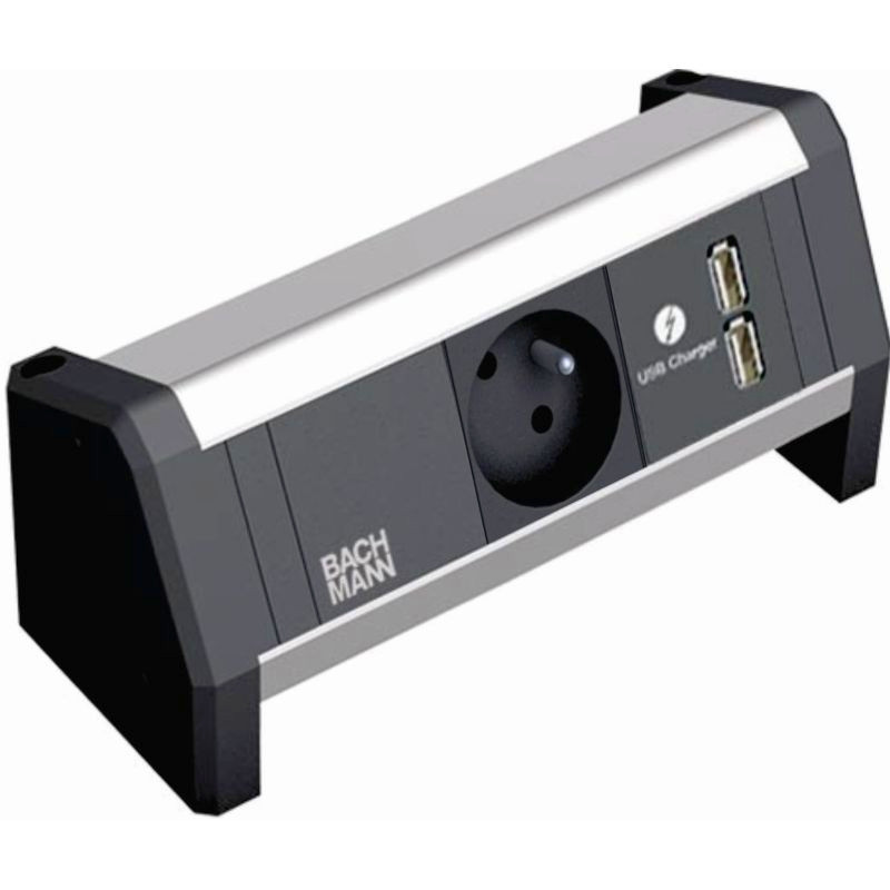 DESK1 2 modules 1x UTE 1x USB CHARGER A/A Alu GST18