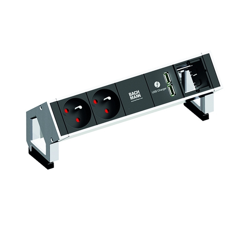 DESK2 4 modules 2x UTE1xUSB CHARGER A/A 1xMOD VIDE blanc RAL9010 0,2m GST18