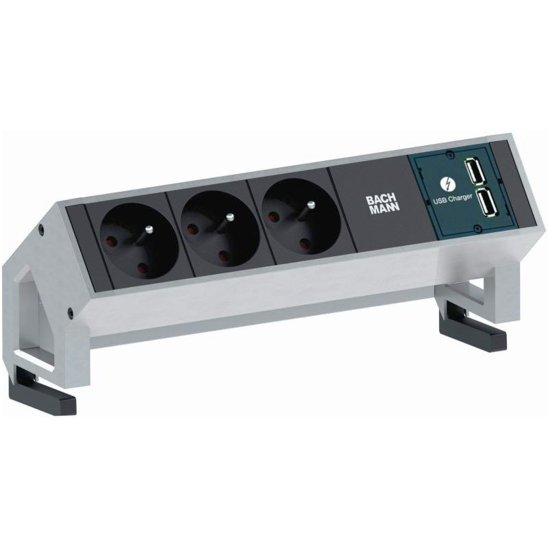 DESK2 4 modules 3x UTE 1x USB CHARGER A/A Inox 1,5m GST18
