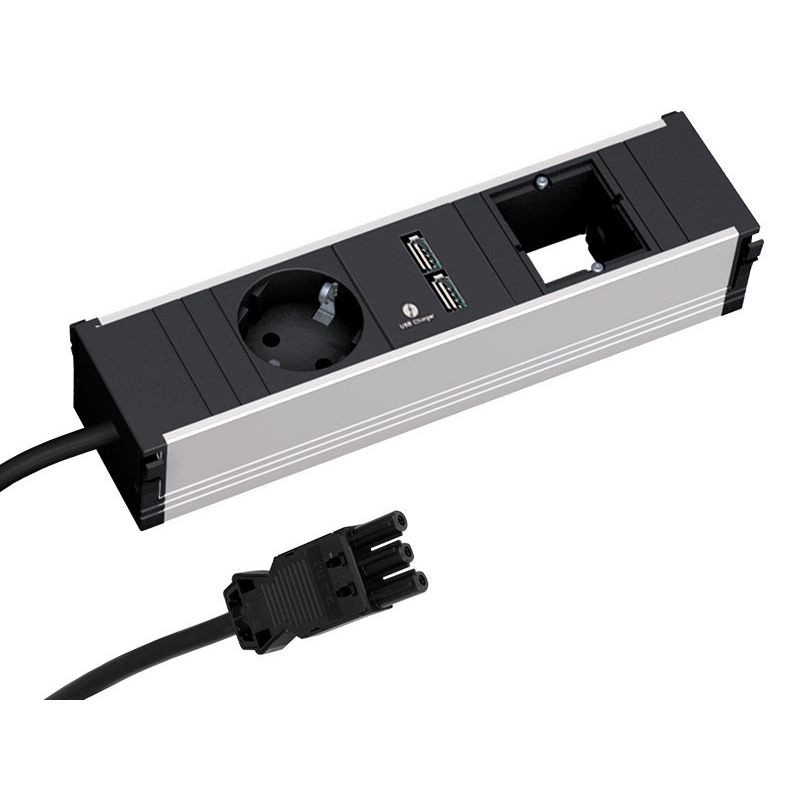 CONI powerstrip 3 mod. 1xSCHUKO 1xUSB CHARGER A/A 1xMOD VIDE 0,2m GST18