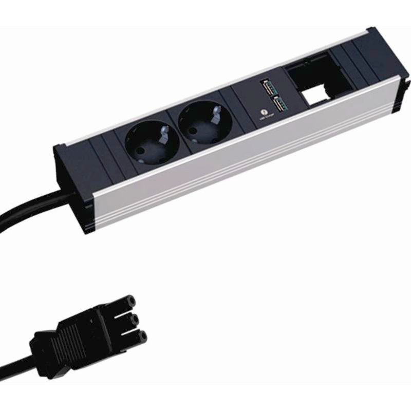 CONI powerstrip 4 mod. 2xSCHUKO 1xUSB CHARGER A/A 1xMOD VIDE 0,2m GST18