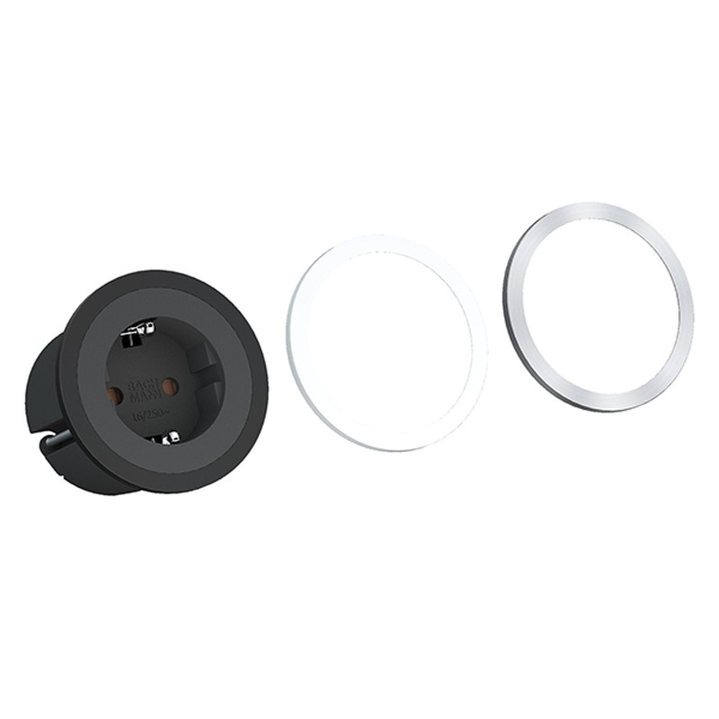 PIX 1x SCHUKO avec 2 anneaux noir/blanc 0,2 mtr cable