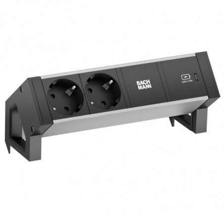 DESK2 4 mod. 2x UTE 1x USB CHARGER A/A 1x MOD VIDE Alu/black 0,2m GST18