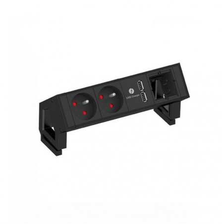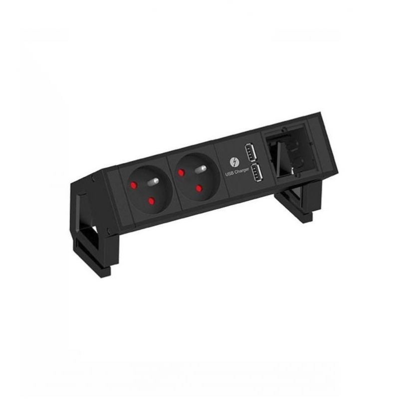 DESK2 4 mod. 2xUTE 1xUSB CHARGER C 60W 1xvide MOD Alu/noir 0,2m GST18