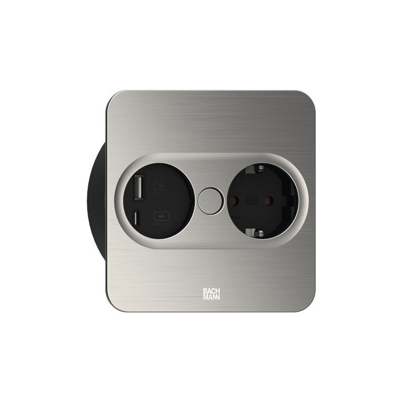 TWIST 2 Carré 1x Schuko 1x USB charger A/C 22W Look acier inoxydable câble 2mtr