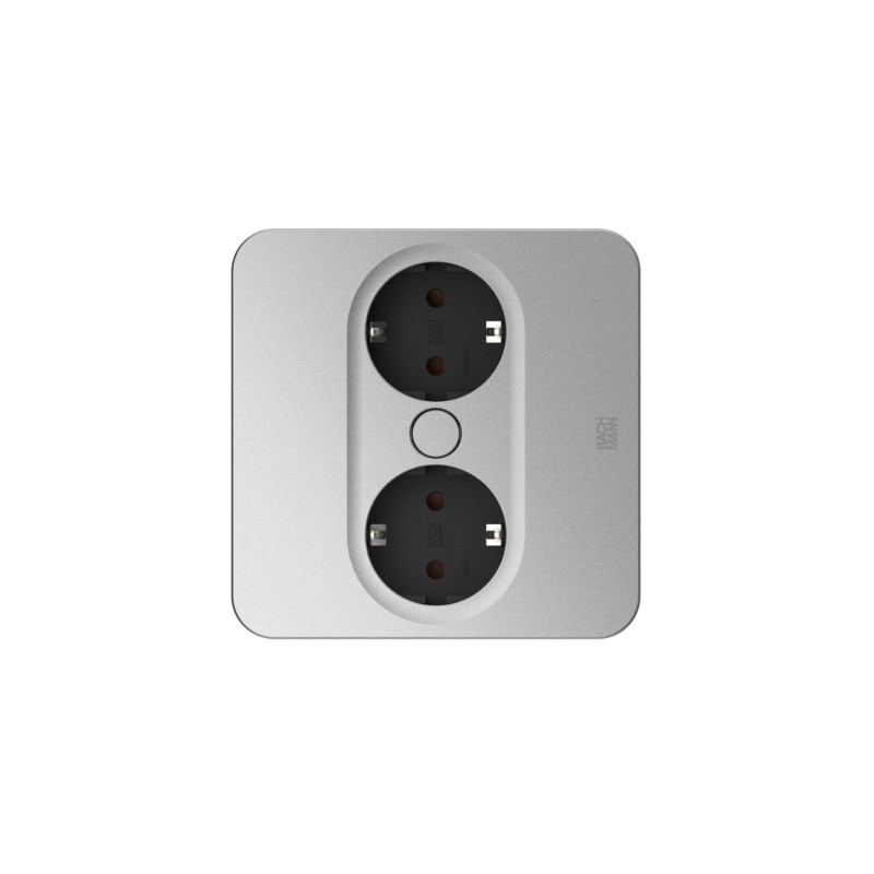 TWIST 2 Carré 2x Schuko Argent mat câble 2mtr