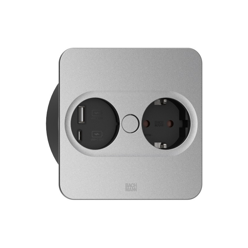 TWIST 2 Carré 1x Schuko 1x USB charger A/C 22W Argent mat câble 2mtr