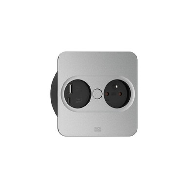 TWIST 2 Carré 1x UTE 1x USB charger A/C 22W Argent mat câble 2mtr