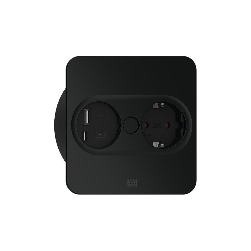 TWIST 2 Carré 1x Schuko 1x USB charger A/C 22W Noir mat RAL9005 câble 2mtr
