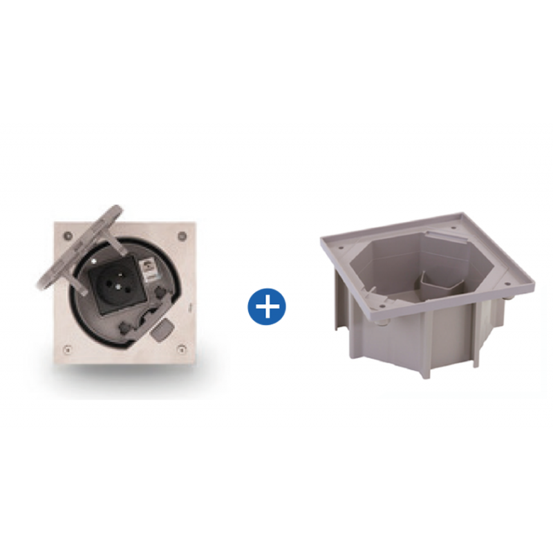 IP66 Kit boîte de sol en inox avec prise et connection data, incl. boîte encastrée pour sol bétonné