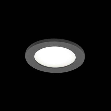 Plafonnier encastré rond en aluminium surface en anthracite gris revêtement par poudre structure de surface mate RAL 7016 cache PMMA opale montage sans outil au moyen de ressorts à lames profondeur dencastrement 70 mm PCB 3-step binning c