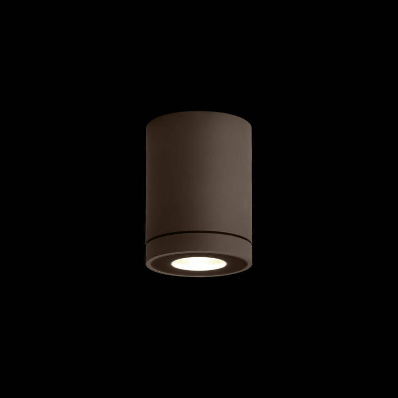 Downlight de plafond en saillie cylindrique en aluminium moulé sous pression surface en Bronze revêtement par poudre structure de surface mate RAL 075 30 10 culot GU10 type de lampe PAR16 max. 5W 100 - 240 V indice de protection IP65 Class