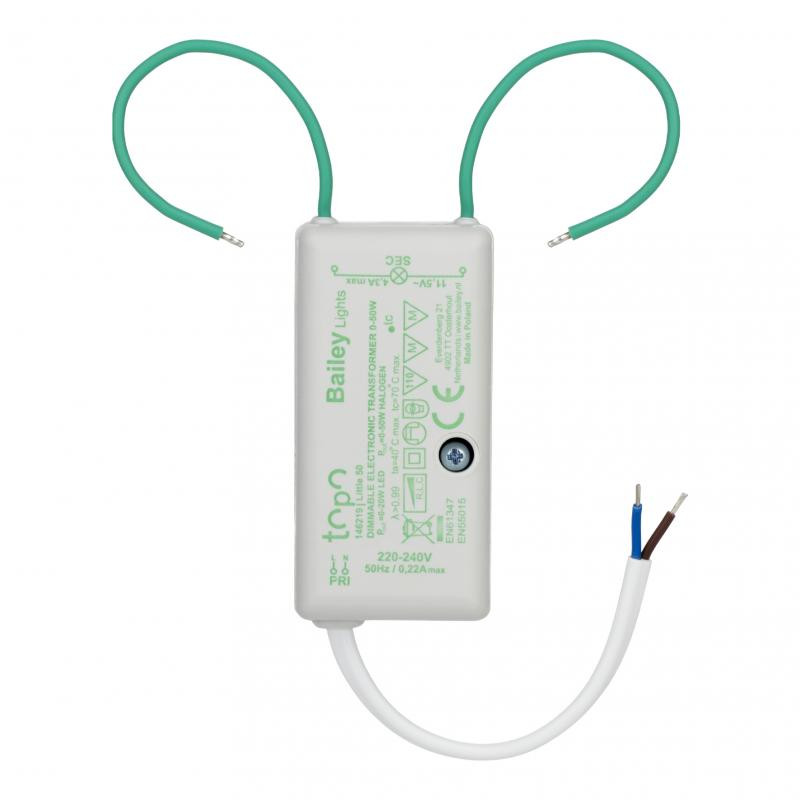 BAI TOPO Mini Souris Transformateur électronique 12V LED 0-20W et Halogène 0-50W 73x36x25mm Min/Max Longueur du câble secondaire 30-200cm Mouse Alimentation Tronic Gradable phase ascendante et phase descendante