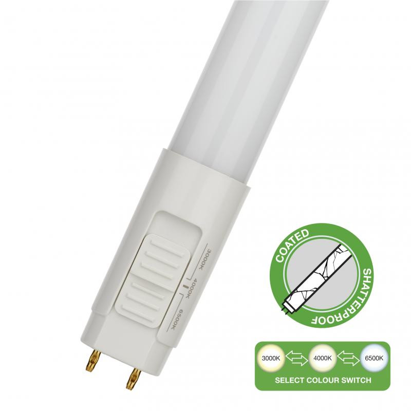 BAI T8 Switch LED Tube 28x600mm G13 9W 18W 900-990lm 3CCT 3000K 4000K 6500K CRI80 Protection contre les éclats PET HACCP EM Retrofit AC 230V-240V 220 Temp. -20C 25C Alt T26 TLD Lumilux Lampe LED