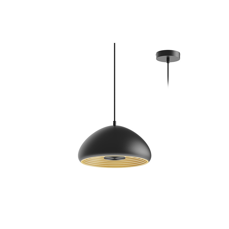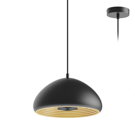 Suspension décorative.Eclairage indirect via le réflecteur au design ondulé créant une ambiance agréable.Livrée avec câble dalimentation textile noir réglable 1.40m max.Convertisseur dimmable intégré dans lappareil.