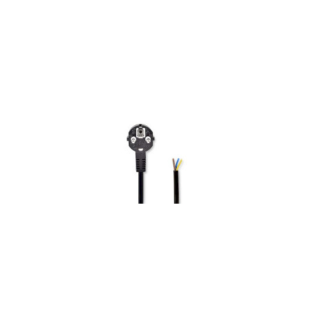 Câble dalimentation Prise de terre mâle Open Coudé Droit Plaqué nickel 2.00 m Rond PVC Noir Label
