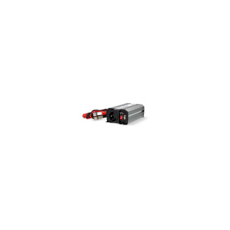 Convertisseur de tension modifiée onde sinusoïdale Tension dentrée 12 V DC Connexion s de sortie dalimentation de lappareil Type E CEE 7/5 / USB-A 230 V AC 50 Hz 150 W Puissance de sortie maximale 300 W Prise allume-cigare Argent