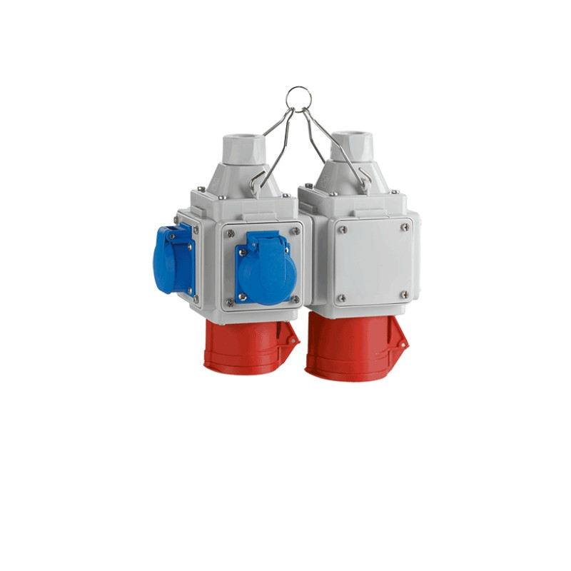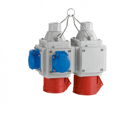 Cube dalimentation pour 2câbles dalimentation, 3prises SCHUKO, 1prise CEE 5/16A32A, IP44