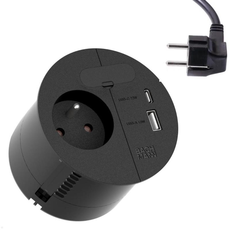 LOOP IN CHARGE 1xUTE 1xUSB A/C 22W 1x passage cable 2,0m CEE7/7 noir RAL9005