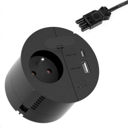 LOOP IN CHARGE 1xUTE 1xUSB A/C 22W 1x passage cable 0,2m GST18 noir RAL9005