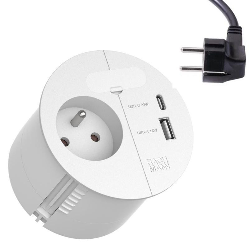 LOOP IN CHARGE 1xUTE 1xUSB A/C 22W 1x passage cable 2,0m CEE7/7 blanc RAL9010