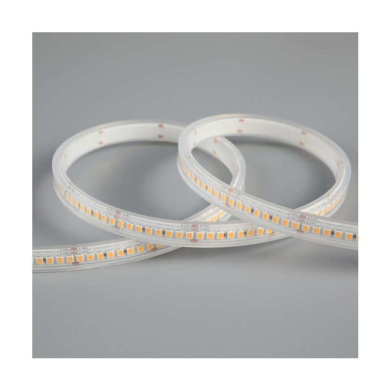 Ruban LED de la série PERFORMANCE. Le ruban se distingue par un effet déclairage uniforme grâce à lutilisation dune courte distance entre les LED. Le ruban est composée de 240 LED par mètre avec une puissance de 3,5W/m et a une classe énergétique D. Convient aux envirronements extèrieurs et humides IP67. Rouleau de 5m. Le ruban de LED est contrlée par une tension de 24Vdc. Le ruban fournit 500 Lm/m et a une température de couleur de 3000K avec un IRC de 90. Le ruban est dimmable via PWM.
