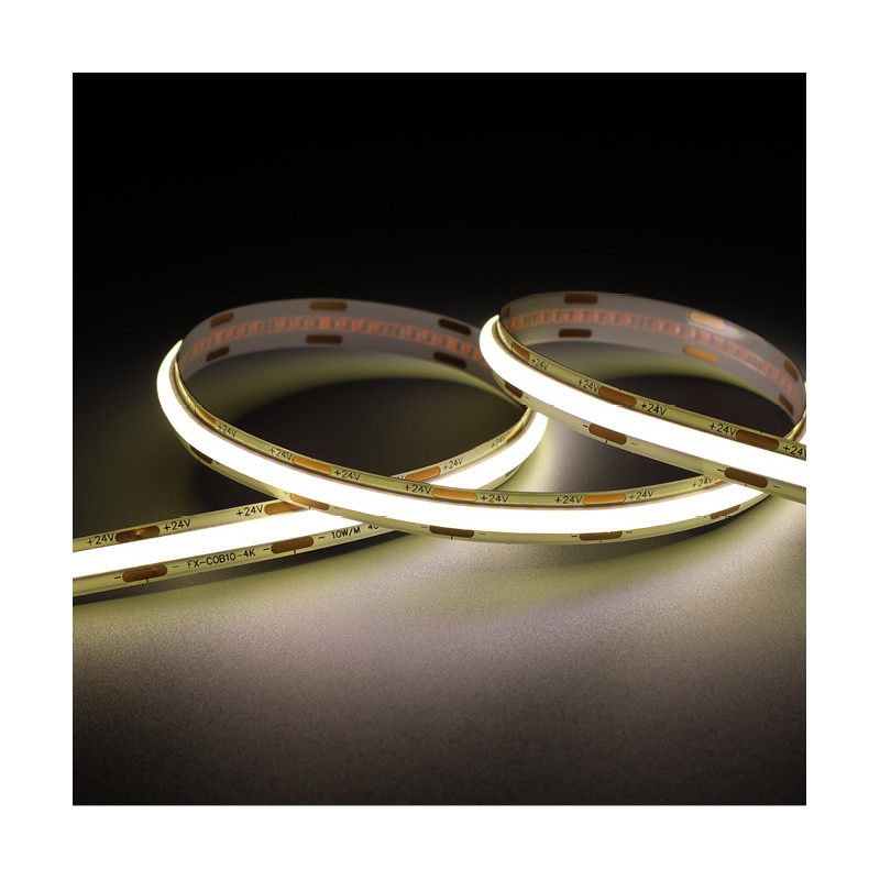 Ruban LED de la série PERFORMANCE. Le ruban se distingue par un effet déclairage uniforme grâce à lutilisation dun autre type de LED. Le ruban est composée de 384 LED COB par mètre avec une puissance de 14.3W/m et a une classe énergétique E. Convient aux envirronements intèrieurs et secs IP20. Rouleau de 5m. Le ruban de LED est contrlée par une tension de 24Vdc. Le ruban fournit 1500 Lm/m et a une température de couleur de 4000K avec un IRC de 90. Le ruban est dimmable via PWM.