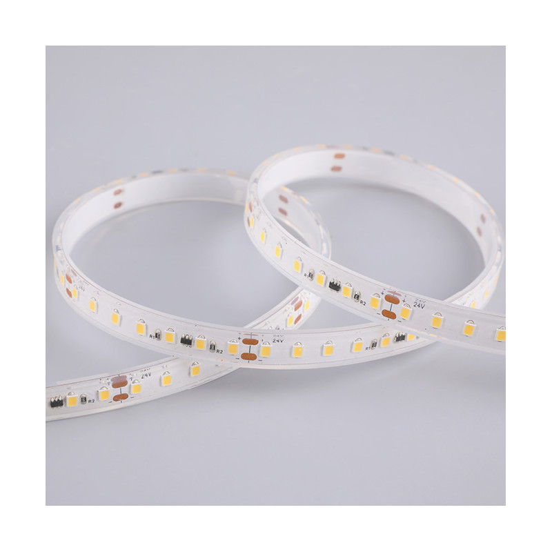 Ruban LED de la série PERFORMANCE. Le ruban se distingue par sa résistance aux températures de fonctionnement élevées, jusquà 100C. Le ruban est composée de 126 LED SMD par mètre avec une puissance de 9,8W/m et a une classe énergétique D. Convient aux envirronements extèrieurs en humides IP67. Rouleau de 5m. Le ruban de LED est contrlée par une tension de 24Vdc. Le ruban fournit 1250 Lm/m et a une température de couleur de 3000K avec un IRC de 80. Le ruban est dimmable via PWM.