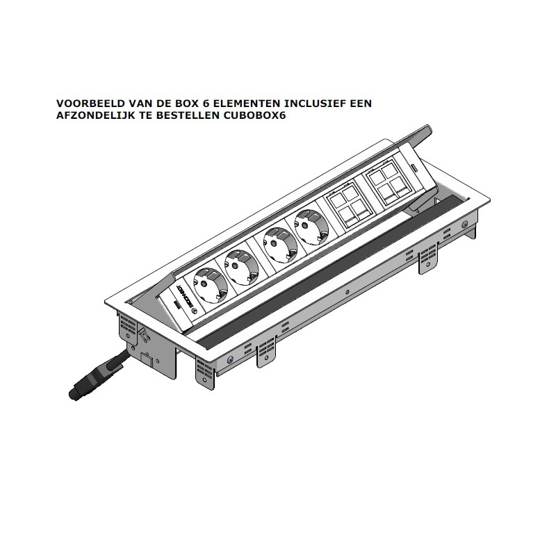LA BOX EST UNE STRUCTURE METALLIQUE, ENCASTREE DANS UNE NICHE DANS LE PLAN DE TRAVAIL ET FIXEE AU MOYEN D'UN SYSTEME DE FIXATION SIMPLE.LA BOX EST LAQUEE EN RAL 9016 (BLANC SIGNALISATION) POUR COMPLETER LA BOX, IL FAUT COMMANDER SEPAREMENT UN CUBOBOX, UN