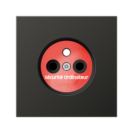 ENJOLIVEUR POUR MECANISME PRISE, SYSTEME FRANCAIS ET BELGE, ART. N. 1520 ..F EINS, 1521 ..F EINSAVEC OBTURATEURS SAFETY PLUS ET MARQUAGE ROUGE POUR RESEAUX SECOURSMATERIAU ALUMINIUM LAQUECOULEUR ANTHRACITE