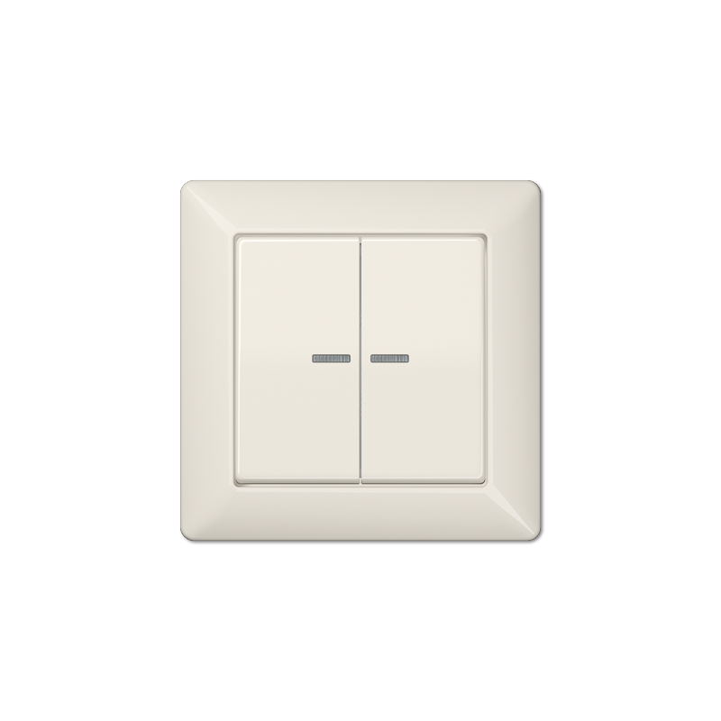 ENJOLIVEUR DOUBLE TOUCHE A VOYANT CRAYON ET AVEC CADRE DE FINITIONPOUR INTERRUPTEUR DOUBLE ART. N. 505 U 5POUR INTERRUPTEUR DE CONTROLE DOUBLE ART. N. 505 KOU 5POUR BOUTON POUSSOIR DOUBLE ART. N. 535 U 5DIMENSIONS 80,5 X 80,5 MMMATERIAU DUROPLA