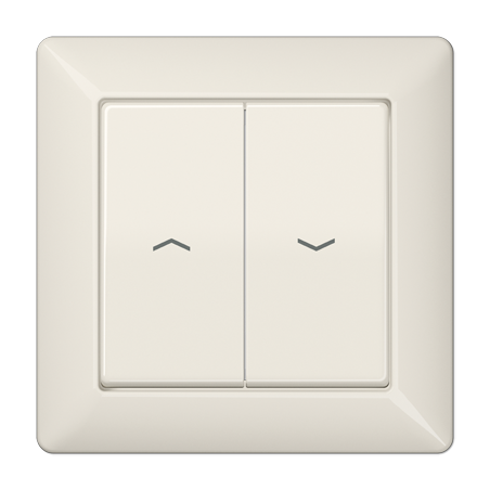 ENJOLIVEUR DOUBLE TOUCHE AVEC SYMBOLES FLECHES ET AVEC CADRE DE FINITIONPOUR INTERRUPTEUR DE VOLET ROULANT ART. N. 509 VUPOUR BOUTON POUSSOIR DE VOLET ROULANT ART. N. 539 VUDIMENSIONS 80,5 X 80,5 MMMATERIAU DUROPLASTIQUE RESISTANT AUX ERAFLURES
