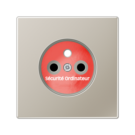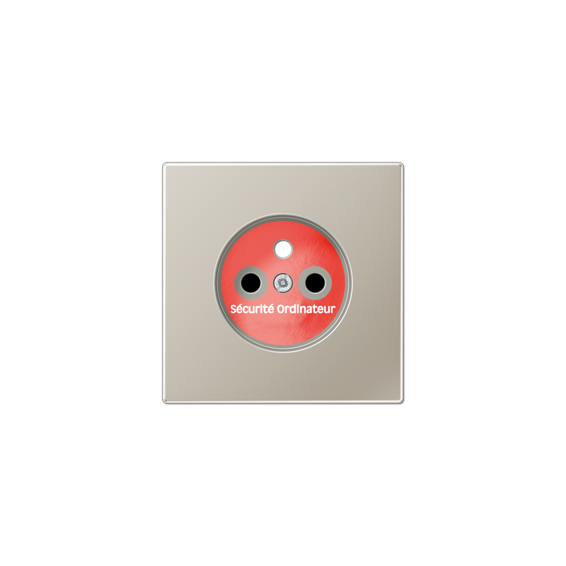 ENJOLIVEUR POUR MECANISME PRISE, SYSTEME FRANCAIS ET BELGE, ART. N. 1520 ..F EINS, 1521 ..F EINSAVEC OBTURATEURS SAFETY PLUS ET MARQUAGE ROUGE POUR RESEAUX SECOURSMATERIAU METAL INOX 1.4303 X4 CRNI 18-12COULEUR METAL INOX