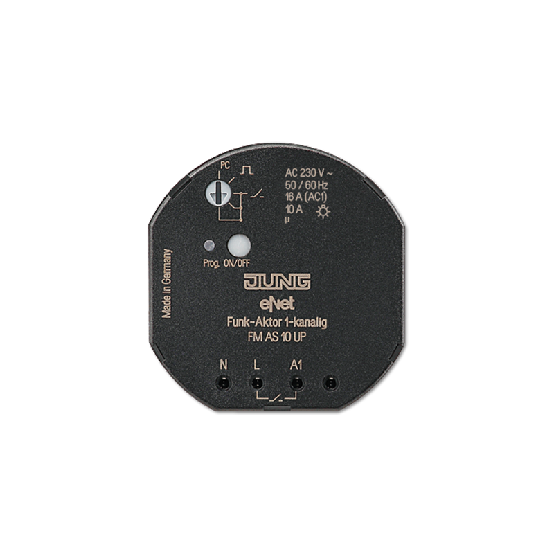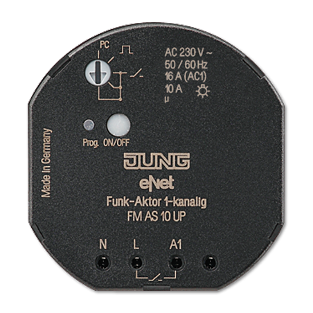 ENET ACTIONNEUR DE COMMUTATION / À POUSSOIR 1 VOIE MININOUVELLE FONCTION DU SYSTÈME TRANSMISSION RADIO TOTALEMENT CRYPTÉE AES-CCM À PARTIR DU ENET SERVER, VERSION DE LOGICIEL 2.0USAGE CONFORME COMMUTATION DE LÉCLAIRAGE COMMANDE AVEC ÉMETTEURS RADIO