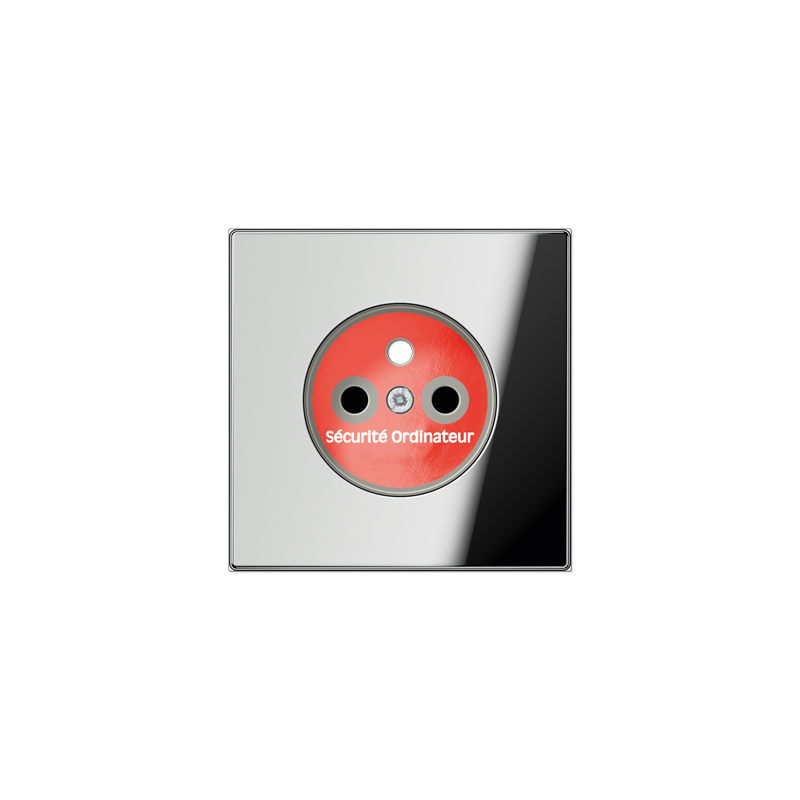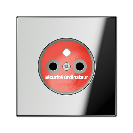 ENJOLIVEUR POUR MECANISME PRISE, SYSTEME FRANCAIS ET BELGE, ART. N. 1520 ..F EINS, 1521 ..F EINSAVEC OBTURATEURS SAFETY PLUS ET MARQUAGE ROUGE POUR RESEAUX SECOURSMATERIAU METAL, SURFACE CHROMEECOULEUR CHROME