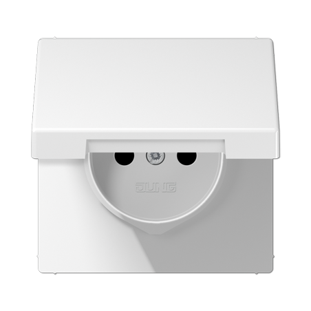 ENJOLIVEUR POUR PRISE AVEC COUVERCLE A CHARNIERE AVEC RESSORT DE RAPPELPOUR MECANISME PRISE, SYSTEME FRANCAIS ET BELGE, ART. N. 1520 ..F EINS, 1521 ..F EINSAVEC OBTURATEURS SAFETY PLUSMATERIAU DUROPLASTIQUE RESISTANT AUX ERAFLURES BRILLANTCOULEU